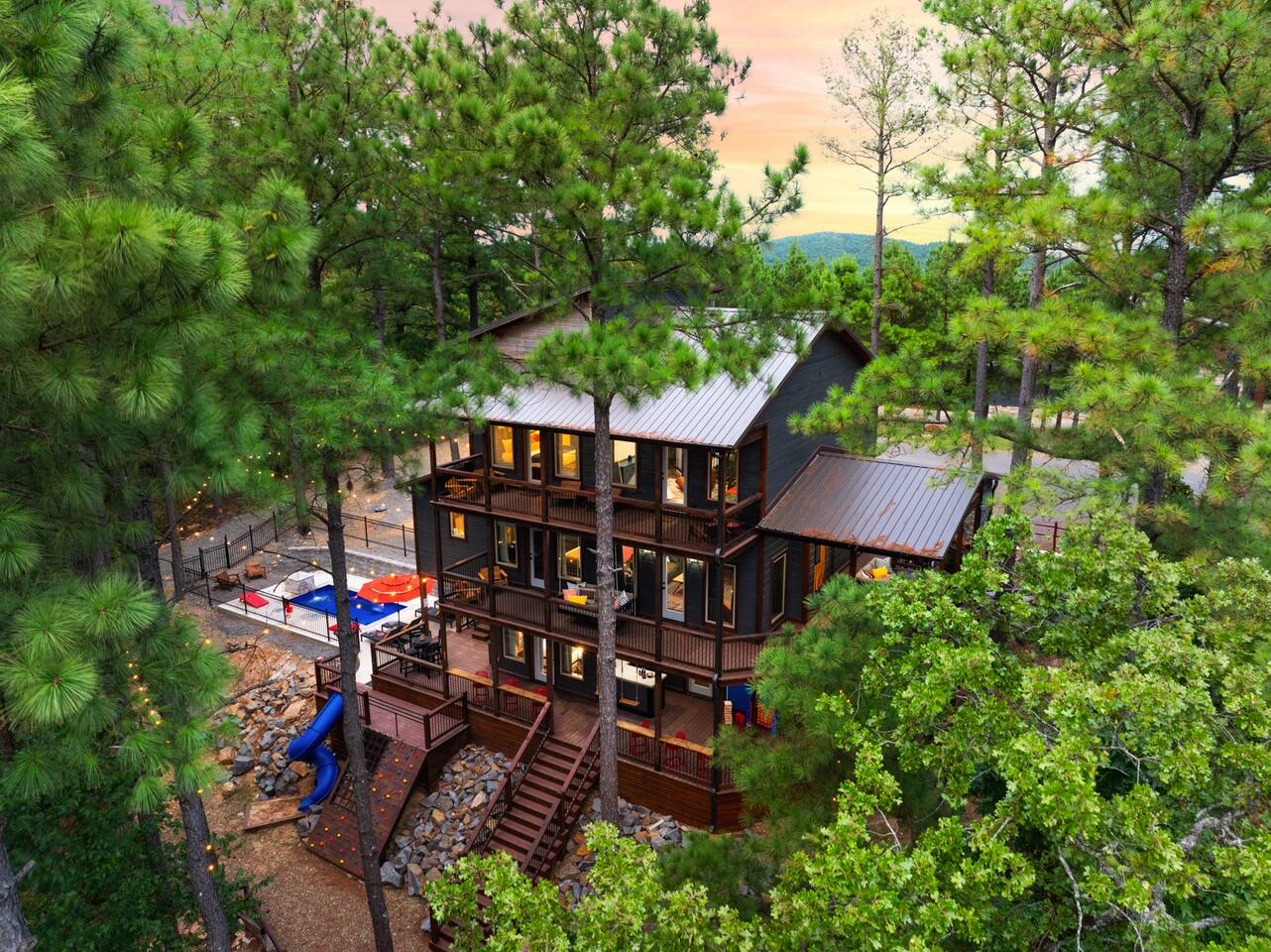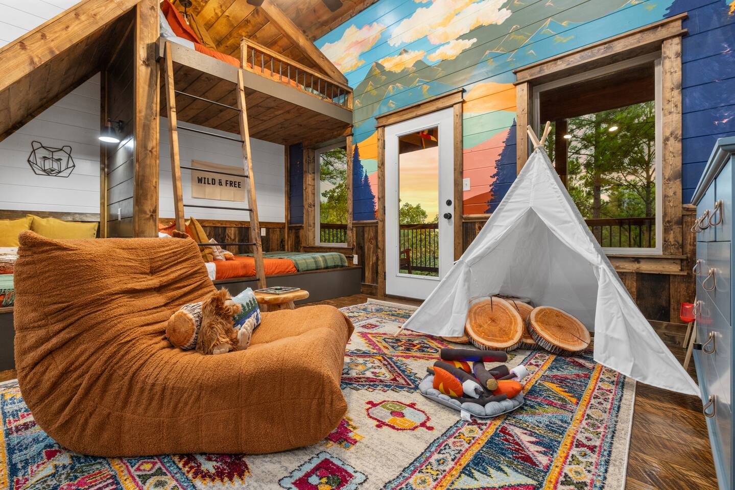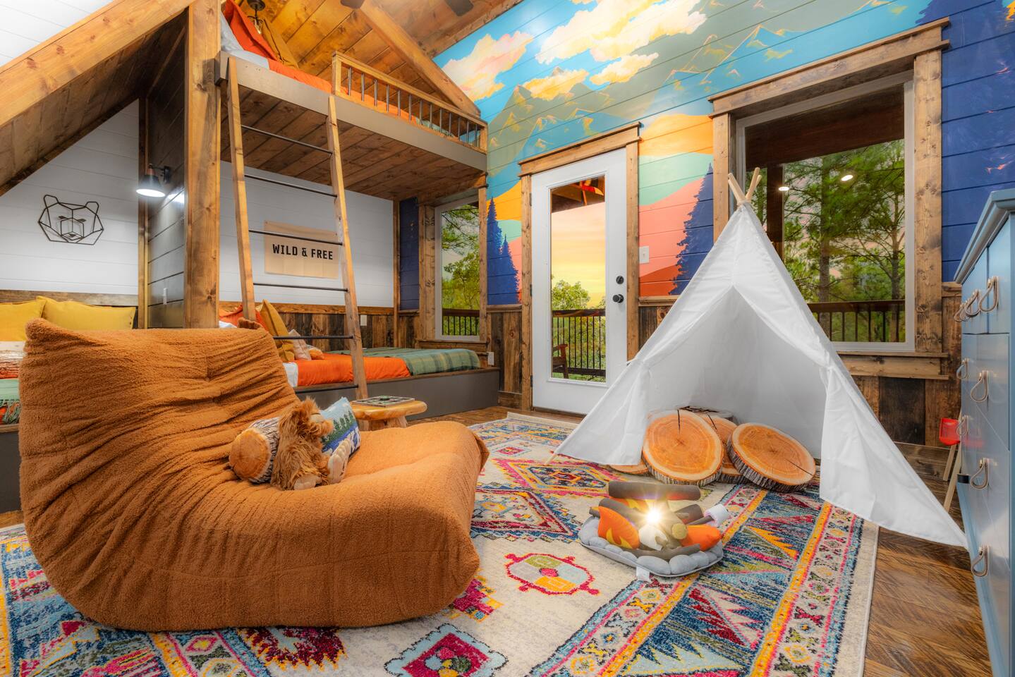 Your Ultimate Family Getaway includes a heated pool, mini-golf, sauna, Cold plunge, game room, Rock wall and slide, wellness center, and immersive kid loft with views!