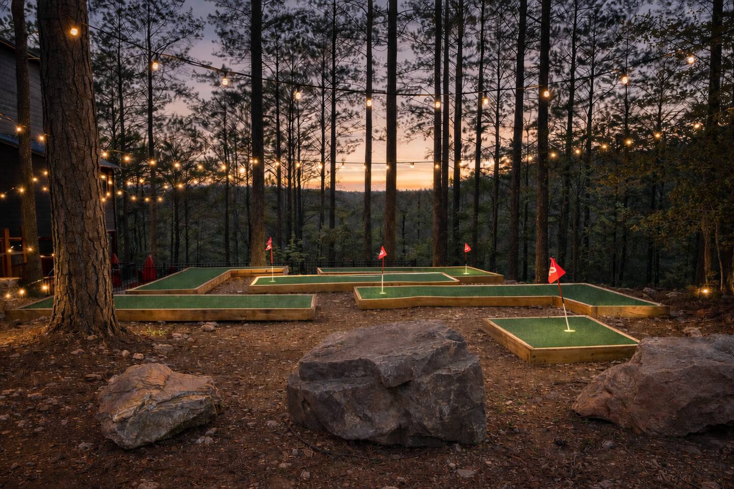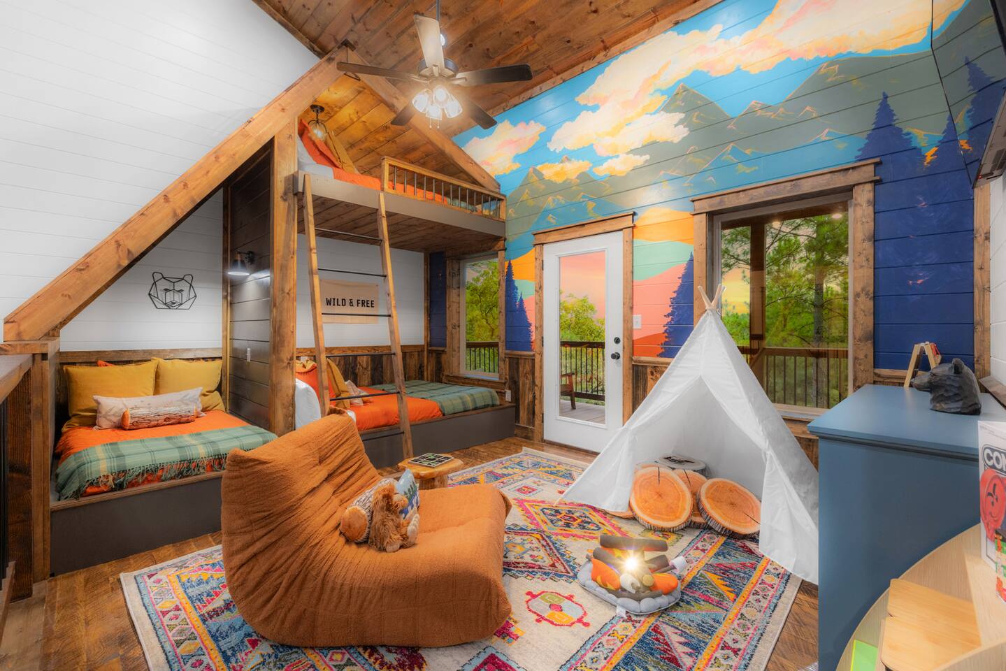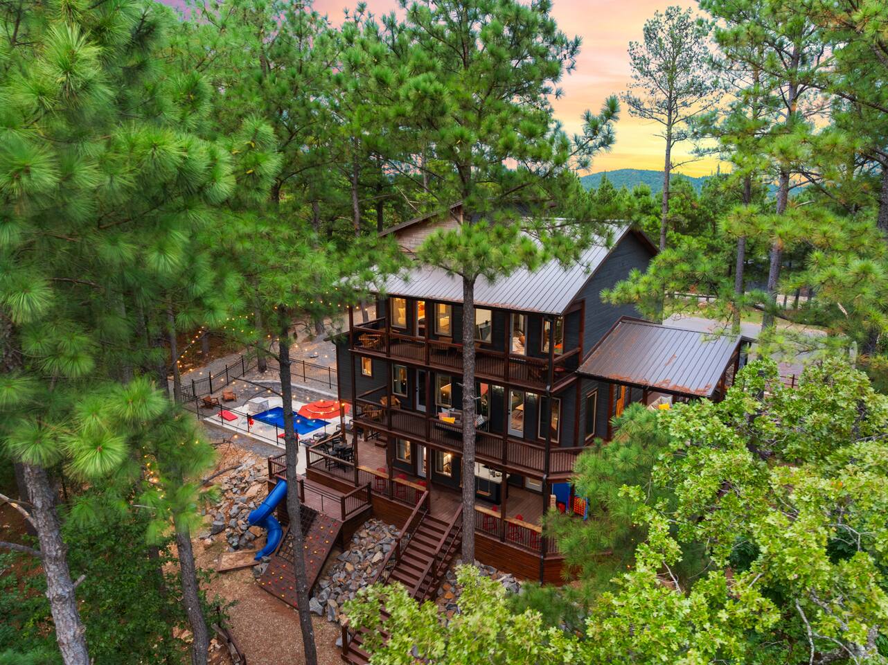 Your Ultimate Family Getaway includes a heated pool, mini-golf, sauna, Cold plunge, game room, Rock wall and slide, wellness center, and immersive kid loft with views!