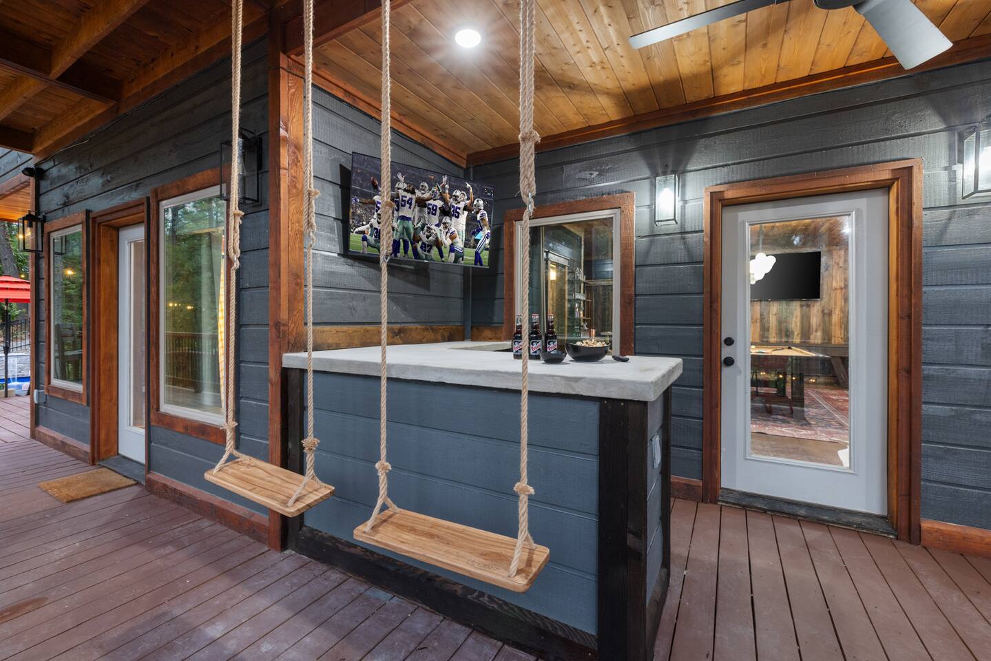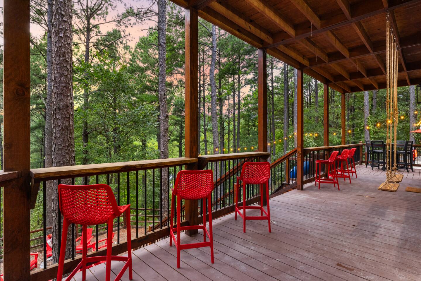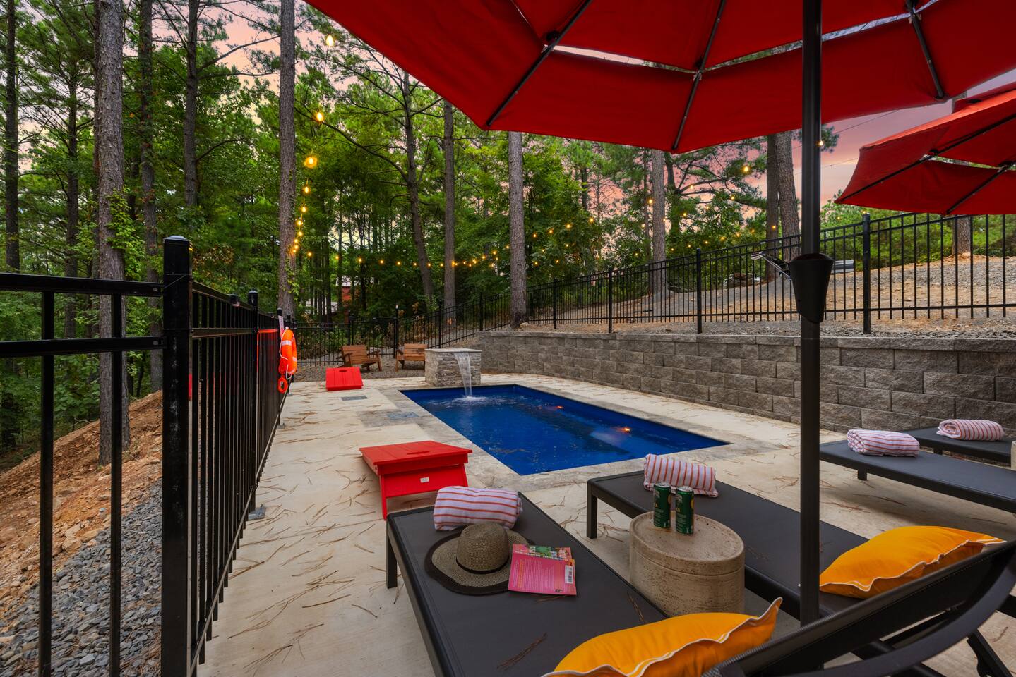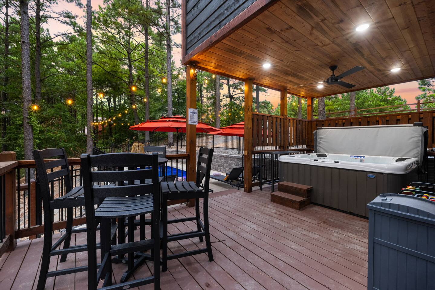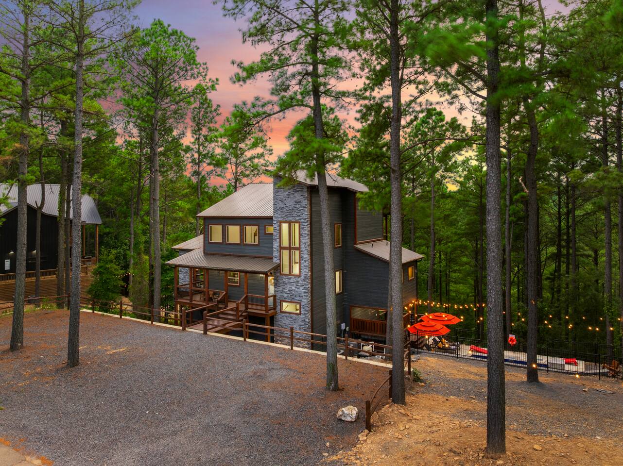 Welcome to the Lazy Lariat, where Hochatown charm meets luxury living. Tucked in the pines of Broken Bow, this ranch-style retreat was built for folks who want more than just a cabin—they want an experience. Whether you’re rounding up the whole family or ridin’ in with friends, the Lazy Lariat delivers wide-open fun and plenty of spots to kick your boots off and relax. The Lazy Lariat is more than a cabin—it’s a place for your crew to gather ‘round, connect, and write the kind of stories you’ll tell for years Highlights at The Lazy Lariat: 🏊 Heated pool for refreshing swims (open March- November) 🧖 Barrel sauna & cold plunge for cowboy-style recovery 🔥 Firepit for s’mores & starlit stories 🍹 Outdoor bar & BBQ grill for gatherings 🛝 Climbing rock wall & tube slide off the deck for nonstop fun 🛁 Hot tub under the stars 🎮 Saloon game room with arcade games, pool table, shuffleboard & ping pong 🏋️ Fitness center to keep your routine on track 🤠 Immersive kid loft cabin designed for play & adventure 🍳 Luxury kitchen with stainless steel appliances & bar seating 🛋️ High-end furnishings & spacious entertainment spaces 🐾 Paw-sitive news: 2 pets are only welcome if approved ahead of time. 🌲 Tucked in the pines with western design & modern comfort 📍 Prime Hochatown location near Beavers Bend State Park, Broken Bow Lake & local dining Top 3 Reasons Families Love the Lazy Lariat: 1. Adventure at Your Doorstep – From the climbing rock wall and thrilling tube slide to arcade games and putt putt, kids have endless ways to play while parents relax nearby. 2. Space to Connect – With roomy living areas, a luxury kitchen, and cozy nooks, there’s plenty of space for family meals, game nights, and memory-making moments. 3. Relaxation for All Ages – Parents can soak in the hot tub, recharge in the sauna, or lounge by the pool while the kids enjoy their own immersive loft cabin—everyone gets their perfect getaway. THE GREAT OUTDOORS Step outside and you’ll find a heated pool for refreshing swims, a barrel sauna and cold plunge for a true cowboy-style refresh, and a firepit where stories and s’mores flow late into the night. Kids (and the young at heart) will love the climbing rock wall and the thrilling tube slide straight off the deck—pure Hochatown fun with a twist. Gather ‘round the outdoor bar & BBQ grill, or unwind in the hot tub while gazing at the starry Oklahoma sky. ENTERTAINMENT FOR EVERYONE The Lazy Lariat saloon is a showstopper—complete with arcade games, a pool table, shuffleboard, and ping pong. It’s where kids and grown-ups alike swap laughter louder than a Friday night two-step. For the little wranglers, the immersive kid loft cabin is their very own hideout, designed for adventure and imagination. And when the whole crew wants to gather, the spacious entertainment space makes for the perfect backdrop—whether it’s movie night or game day. LUXURY INSIDE AND OUT The heart of the home is the chef-inspired luxury kitchen, stocked for family feasts or casual breakfasts. From stainless steel appliances to roomy counters and bar seating, cooking here feels like part of the adventure. You’ll also find high-end furnishings throughout, blending western warmth with modern style, so every corner feels as inviting as it is beautiful. WELLNESS & FITNESS Not many cabins can brag about a full fitness center—but we sure can. Stay on track with your workouts, then recover like a true ranch hand with the sauna, plunge, hot tub, or a soothing float in the pool. FAMILY-FRIENDLY DESIGN Every inch of the Lazy Lariat was designed with families in mind. Spacious interiors, luxury finishes, and cozy nooks let you enjoy together time or sneak away for some peace and quiet. From sunrise coffee on the porch to starry nights by the fire, you’ll find comfort at every turn. EVERYDAY COMFORTS INCLUDED We’ve got the essentials covered so you can pack light and relax: fresh linens, toiletries, and a starter supply of coffee. Stay connected with strong Wi-Fi, and enjoy downtime with basic cable and plenty of cozy spots to kick back. PRIME LOCATION We’re right in the heart of Hochatown, just minutes from Beavers Bend State Park, Broken Bow Lake, local dining, and family adventures. When you stay at the Lazy Lariat, you’re close to the action but with all the privacy of your own western escape. Pool Season & Heating Policy Our private pool is open from mid-April through October, when sunny days and warm air temperatures make swimming naturally inviting. During the shoulder seasons—March to mid-April and October to mid-November—you may request pool heating for $50 per day to maintain a comfortable water temperature. POOL CLOSURE PERIOD To protect the pool during the coldest part of the year, the pool is typically closed from early December through late February. However, because occasional freeze events can occur outside this window, we retain some flexibility to adjust opening or closing dates slightly based on weather conditions. Thank you for understanding—this approach helps ensure both guest comfort and proper care of the pool facilities. Seasonal Breakdown: Mid-Apr – Oct 55–90 °F (daytime warm); Open — typically no heating needed, but available upon request ($50/day) Mar–Mid Apr & Mid Nov–Nov ~40–60 °F; Open — heating available on request ($50/day) Early Dec – Early Feb~34 °F (lows), occasional freeze; Closed — pool not available due to cold and freeze risk Flexible Freeze Buffer: Dates may shift slightly due to weather patterns, so please plan accordingly for November and March bookings PET POLICY Allowed Pets: We welcome up to 2 well-behaved dogs (cats by request). Fee Structure: $30 per pet per night, non-refundable. House Rules for Pets: Pets must not be on furniture (beds, sofas, etc.). Please crate or confine pets when left unattended. Any soiling, hair, or damage beyond normal cleaning may incur