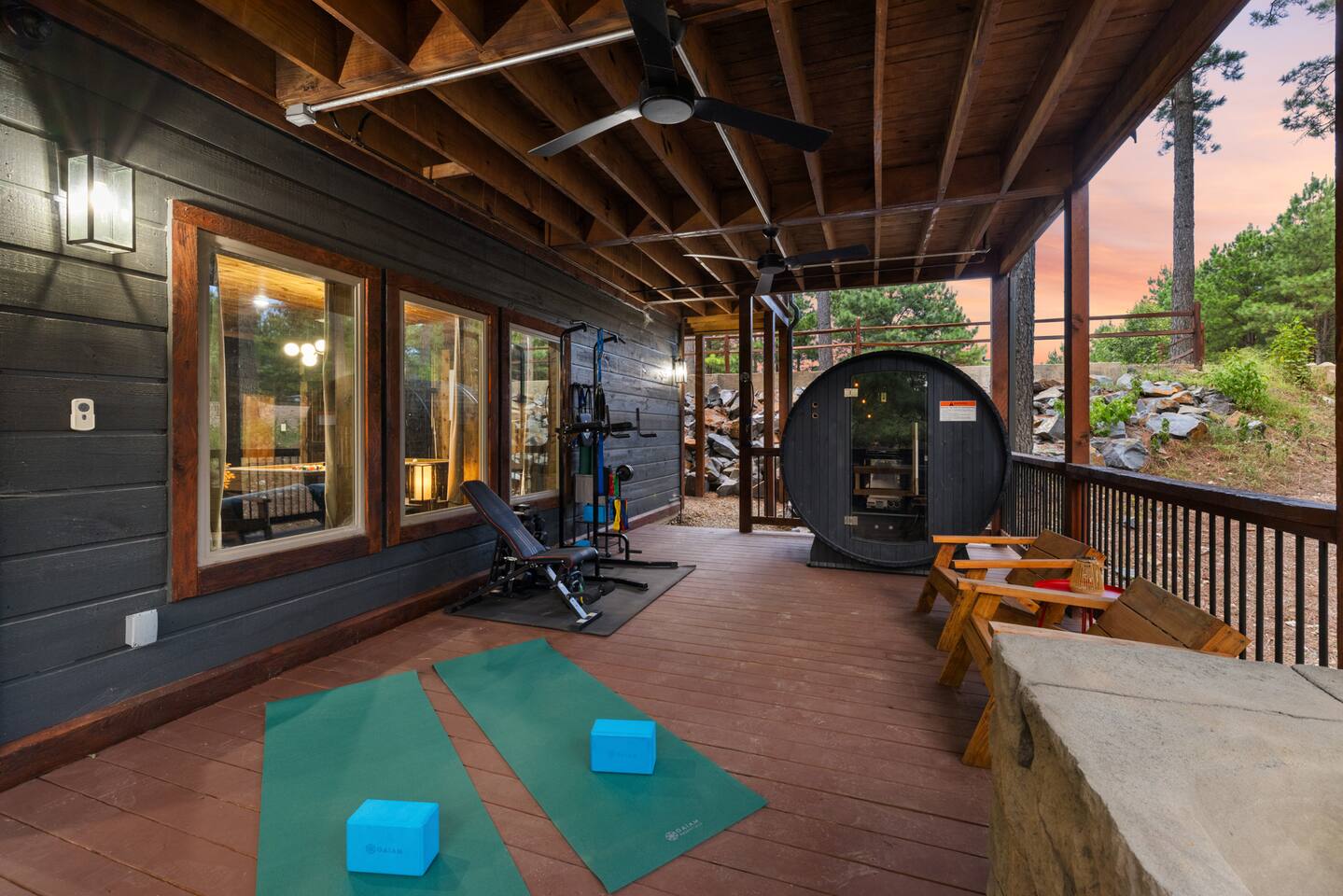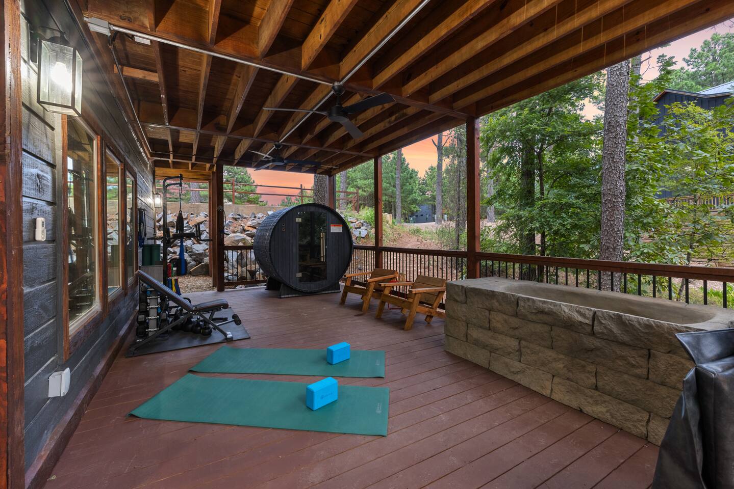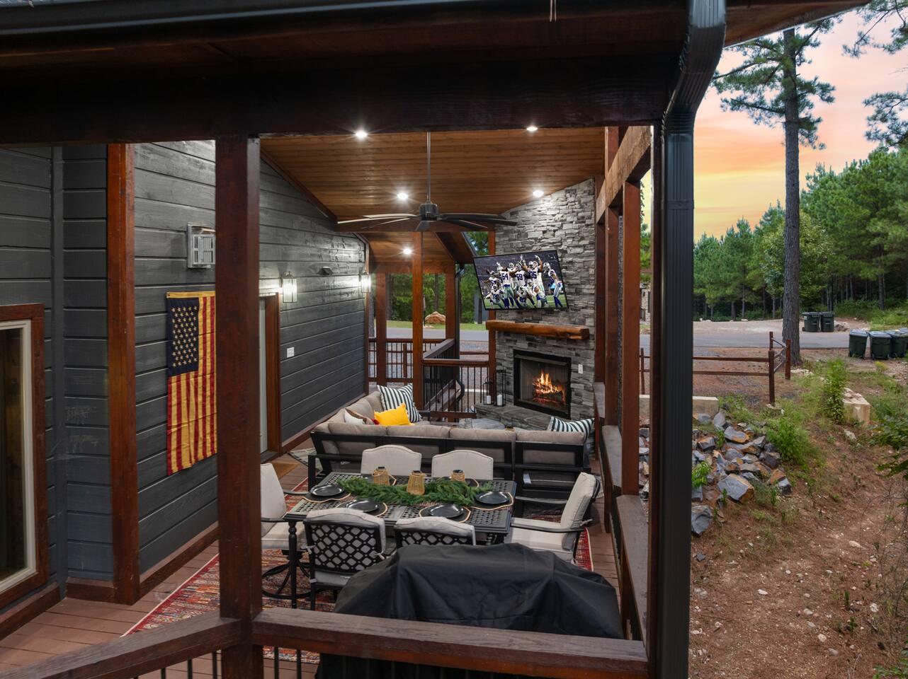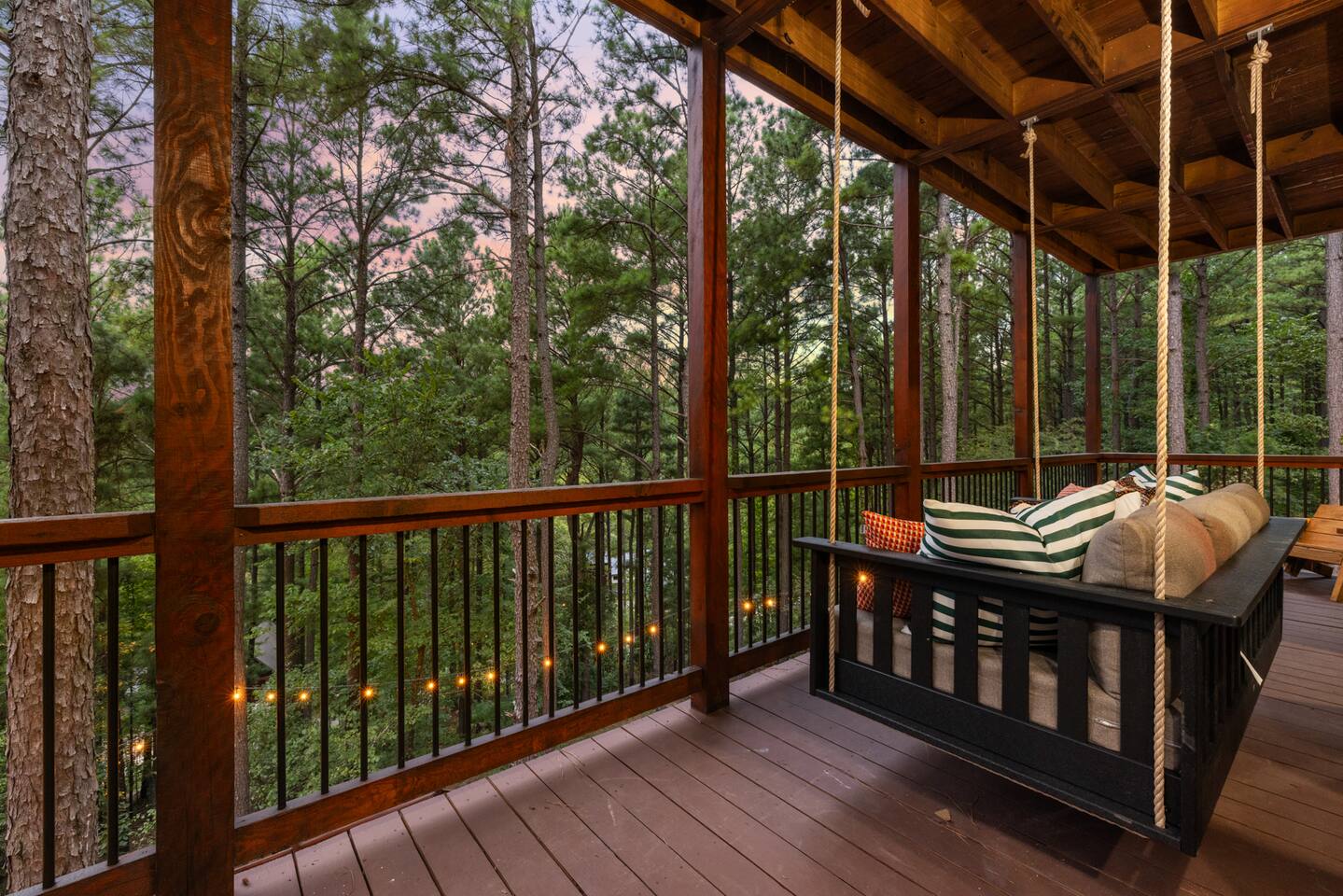 Welcome to the Lazy Lariat, where Hochatown charm meets luxury living. Tucked in the pines of Broken Bow, this ranch-style retreat was built for folks who want more than just a cabin—they want an experience. Whether you’re rounding up the whole family or ridin’ in with friends, the Lazy Lariat delivers wide-open fun and plenty of spots to kick your boots off and relax. The Lazy Lariat is more than a cabin—it’s a place for your crew to gather ‘round, connect, and write the kind of stories you’ll tell for years Highlights at The Lazy Lariat: 🏊 Heated pool for refreshing swims (open March- November) 🧖 Barrel sauna & cold plunge for cowboy-style recovery 🔥 Firepit for s’mores & starlit stories 🍹 Outdoor bar & BBQ grill for gatherings 🛝 Climbing rock wall & tube slide off the deck for nonstop fun 🛁 Hot tub under the stars 🎮 Saloon game room with arcade games, pool table, shuffleboard & ping pong 🏋️ Fitness center to keep your routine on track 🤠 Immersive kid loft cabin designed for play & adventure 🍳 Luxury kitchen with stainless steel appliances & bar seating 🛋️ High-end furnishings & spacious entertainment spaces 🐾 Paw-sitive news: 2 pets are only welcome if approved ahead of time. 🌲 Tucked in the pines with western design & modern comfort 📍 Prime Hochatown location near Beavers Bend State Park, Broken Bow Lake & local dining Top 3 Reasons Families Love the Lazy Lariat: 1. Adventure at Your Doorstep – From the climbing rock wall and thrilling tube slide to arcade games and putt putt, kids have endless ways to play while parents relax nearby. 2. Space to Connect – With roomy living areas, a luxury kitchen, and cozy nooks, there’s plenty of space for family meals, game nights, and memory-making moments. 3. Relaxation for All Ages – Parents can soak in the hot tub, recharge in the sauna, or lounge by the pool while the kids enjoy their own immersive loft cabin—everyone gets their perfect getaway. THE GREAT OUTDOORS Step outside and you’ll find a heated pool for refreshing swims, a barrel sauna and cold plunge for a true cowboy-style refresh, and a firepit where stories and s’mores flow late into the night. Kids (and the young at heart) will love the climbing rock wall and the thrilling tube slide straight off the deck—pure Hochatown fun with a twist. Gather ‘round the outdoor bar & BBQ grill, or unwind in the hot tub while gazing at the starry Oklahoma sky. ENTERTAINMENT FOR EVERYONE The Lazy Lariat saloon is a showstopper—complete with arcade games, a pool table, shuffleboard, and ping pong. It’s where kids and grown-ups alike swap laughter louder than a Friday night two-step. For the little wranglers, the immersive kid loft cabin is their very own hideout, designed for adventure and imagination. And when the whole crew wants to gather, the spacious entertainment space makes for the perfect backdrop—whether it’s movie night or game day. LUXURY INSIDE AND OUT The heart of the home is the chef-inspired luxury kitchen, stocked for family feasts or casual breakfasts. From stainless steel appliances to roomy counters and bar seating, cooking here feels like part of the adventure. You’ll also find high-end furnishings throughout, blending western warmth with modern style, so every corner feels as inviting as it is beautiful. WELLNESS & FITNESS Not many cabins can brag about a full fitness center—but we sure can. Stay on track with your workouts, then recover like a true ranch hand with the sauna, plunge, hot tub, or a soothing float in the pool. FAMILY-FRIENDLY DESIGN Every inch of the Lazy Lariat was designed with families in mind. Spacious interiors, luxury finishes, and cozy nooks let you enjoy together time or sneak away for some peace and quiet. From sunrise coffee on the porch to starry nights by the fire, you’ll find comfort at every turn. EVERYDAY COMFORTS INCLUDED We’ve got the essentials covered so you can pack light and relax: fresh linens, toiletries, and a starter supply of coffee. Stay connected with strong Wi-Fi, and enjoy downtime with basic cable and plenty of cozy spots to kick back. PRIME LOCATION We’re right in the heart of Hochatown, just minutes from Beavers Bend State Park, Broken Bow Lake, local dining, and family adventures. When you stay at the Lazy Lariat, you’re close to the action but with all the privacy of your own western escape. Pool Season & Heating Policy Our private pool is open from mid-April through October, when sunny days and warm air temperatures make swimming naturally inviting. During the shoulder seasons—March to mid-April and October to mid-November—you may request pool heating for $50 per day to maintain a comfortable water temperature. POOL CLOSURE PERIOD To protect the pool during the coldest part of the year, the pool is typically closed from early December through late February. However, because occasional freeze events can occur outside this window, we retain some flexibility to adjust opening or closing dates slightly based on weather conditions. Thank you for understanding—this approach helps ensure both guest comfort and proper care of the pool facilities. Seasonal Breakdown: Mid-Apr – Oct 55–90 °F (daytime warm); Open — typically no heating needed, but available upon request ($50/day) Mar–Mid Apr & Mid Nov–Nov ~40–60 °F; Open — heating available on request ($50/day) Early Dec – Early Feb~34 °F (lows), occasional freeze; Closed — pool not available due to cold and freeze risk Flexible Freeze Buffer: Dates may shift slightly due to weather patterns, so please plan accordingly for November and March bookings PET POLICY Allowed Pets: We welcome up to 2 well-behaved dogs (cats by request). Fee Structure: $30 per pet per night, non-refundable. House Rules for Pets: Pets must not be on furniture (beds, sofas, etc.). Please crate or confine pets when left unattended. Any soiling, hair, or damage beyond normal cleaning may incur